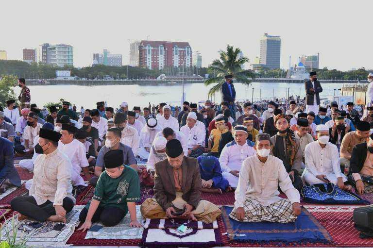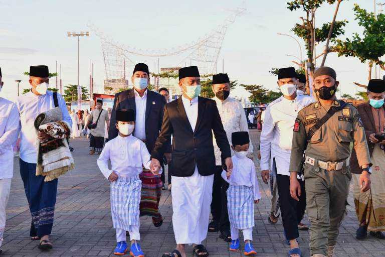 Gubernur Sulsel, Andi Sudirman Sulaiman beserta keluarga turut hadir melaksanakan salat Ied di pelataran Lego-Lego Makassar.