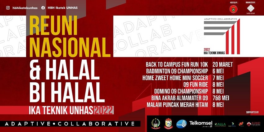 Sisa beberapa hari lagi, Reuni Nasional dan Halal Bi Halal Ikatan Alumni Teknik Universitas Hasanuddin (HBH IKA Teknik Unhas) akan digelar kembali di tahun ini.