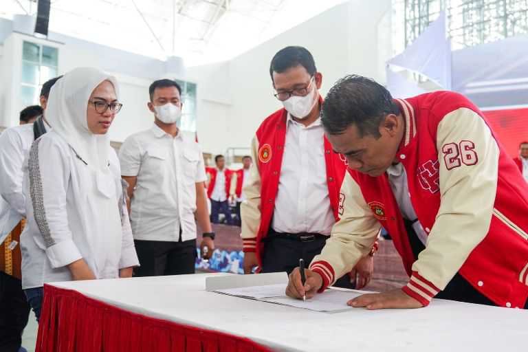 Gubernur Sulawesi Selatan, Andi Sudirman Sulaiman menghadiri pelantikan pengurus Ikatan Keluarga Alumni (IKA) Universitas Hasanuddin (Unhas) periode 2022-2026 yang dinahkodai Andi Amran Sulaiman di JK Arenatorium Kampus Unhas, Sabtu, 14 Maret 2022.