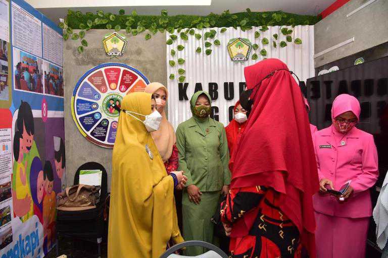 Naoemi Octarina meninjau pameran Kinerja 8 Aksi Penanganan Stunting yang diikuti Pemerintah Kabupaten Kota se-Sulsel.