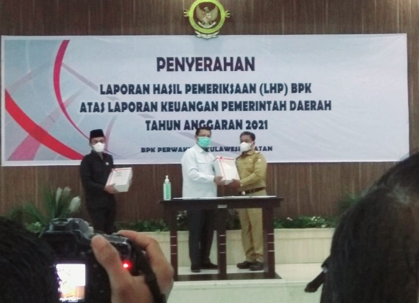 Laporan hasil pemeriksaan LKPD Tahun Anggaran 2021 diserahkan langsung oleh Kepala BPK Perwakilan Sulawesi Selatan (Sulsel), Paula Henry Simatupang Joko kepada Bupati Toraja Utara Yohanis Bassang yang hadir bersama Ketua DPRD Nober Rante Siama, dan Sekretaris Daerah Kabupaten Toraja Utara (Torut) beserta jajaran, Senin (23/05/2022), di kantor perwakilan BPK RI Cabang Sulsel Makassar.