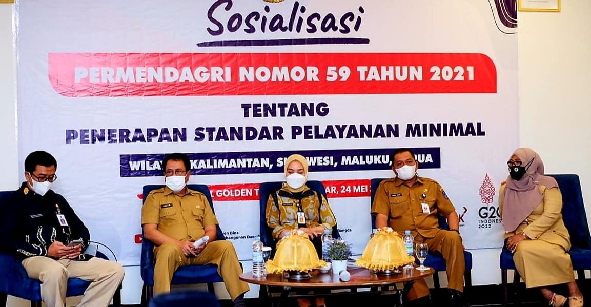 Hal tersebut ia sampaikan pada sosialisasi Permendagri Nomor 59 Tahun 2021 tentang Penerapan Standar Pelayanan Minimal Regional II Kalimantan, Sulawesi, Maluku dan Papua pada Selasa (24/05/2022) di Hotel Golden Tulip Makasar.