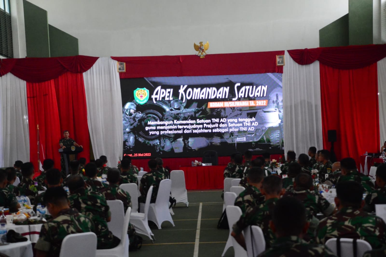 Pangdam III/Slw Mayjen TNI Kunto Arief Wibowo, SIP tutup secara resmi kegiatan Apel Komandan Satuan (AKS) jajaran Kodam III/Slw Tahun Anggaran 2022, yang dipusatkan di Mayonif Raider 303/SSM Kostrad, Desa Sukawargi, Kecamatan Cisurupan, Kabupaten Garut, Jawa Barat, Rabu (25/05/2022).