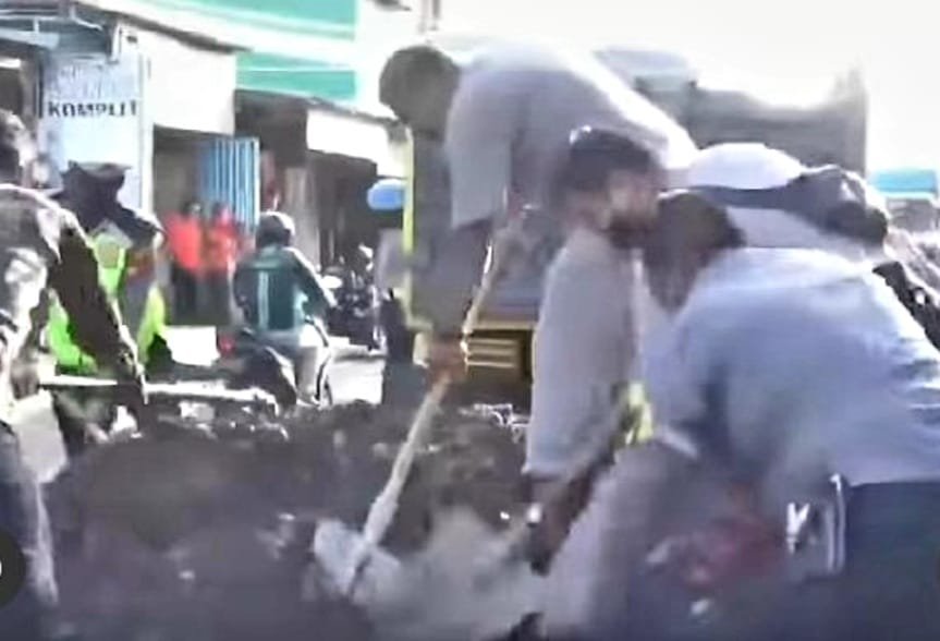 Berdasarkan pantauan, di sepanjang jalan Antang tersebut tampak pihak kepolisian dan warga bahu membahu meratakan sirtu tersebut.