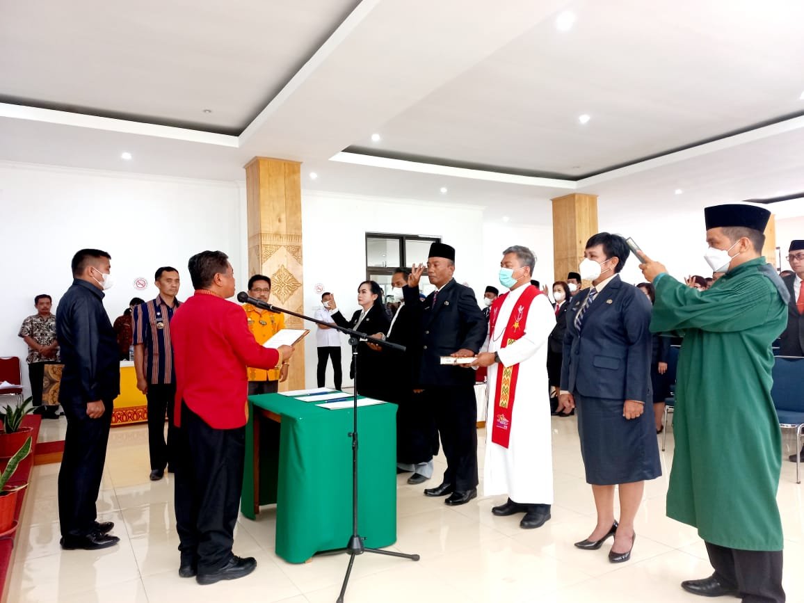 Sebanyak 14 Pejabat Eselon 2 di lingkup pemerintahan Kabupaten Toraja Utara dilantik oleh Bupati Yohanis Bassang di ruang pola kantor Bupati Marante, Kamis, 2 Juni 2022.