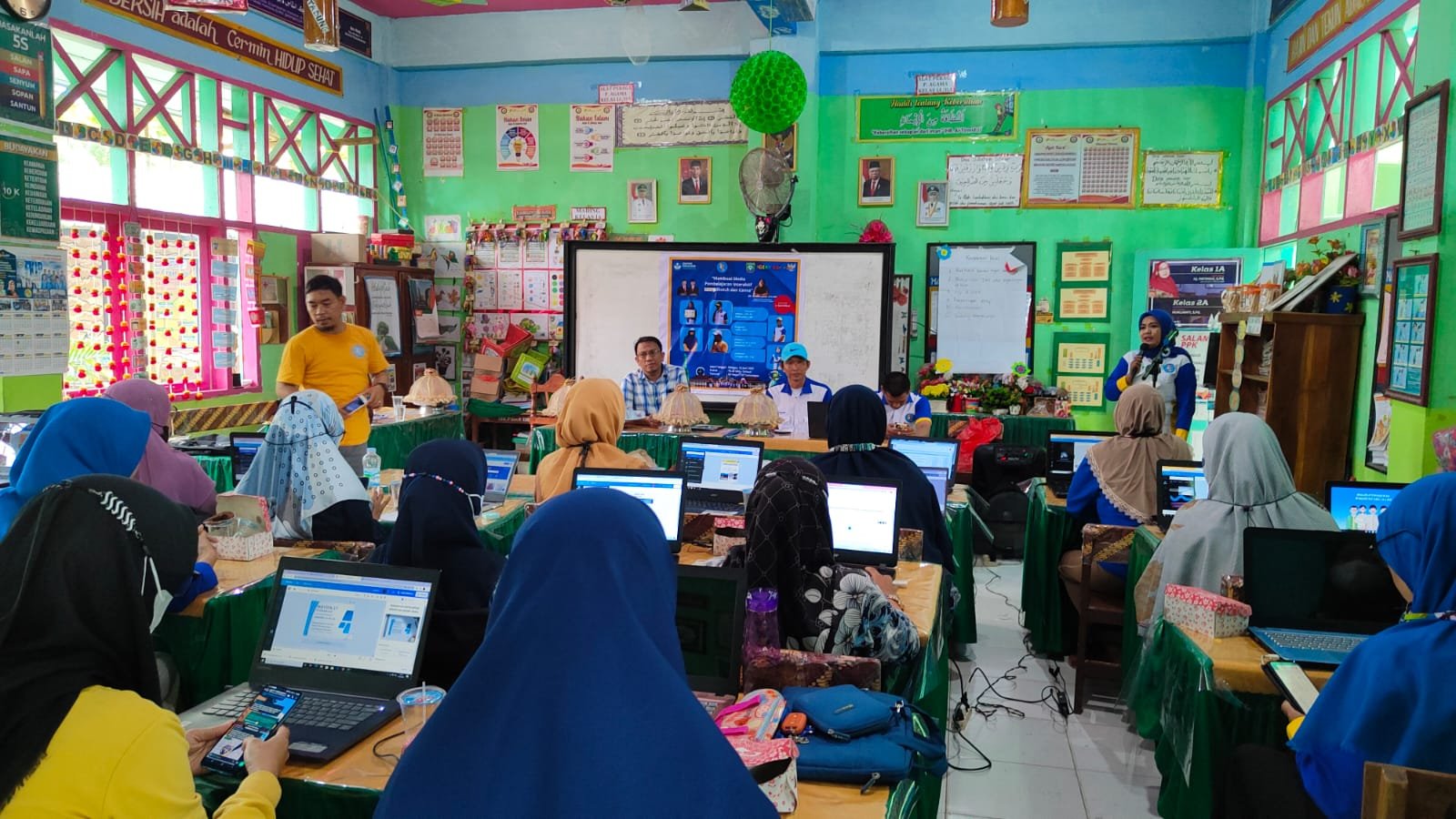 Upaya untuk mencerdaskan anak didik terus dilakukan kapan dan dimana saja, yang tentunya harus ditunjang oleh kemampuan dan keterampilan yang dimiliki oleh profesi seorang guru. Seperti yang dilakukan oleh guru-guru yang tergabung dalam komunitas Guru Hebat Berbagi (GHB) di Pangkep yang membuat pelatihan tentang membuat media pembelajaran interaktif.