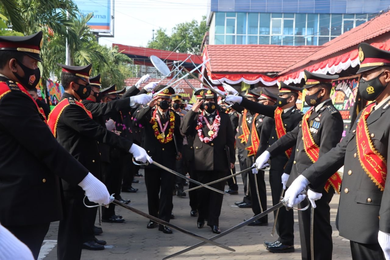 Peristiwa tersebut merupakan rangkaian kegiatan Wisuda Purna Bhakti yang sebelumnya kepada para personel diawali dengan penyerahkan tanda penghargaan dan cindera mata serta pengalungan selendang yang dilakukan Kapolres Pelabuhan Makassar AKBP Yudi Frianto, SIK, MH.