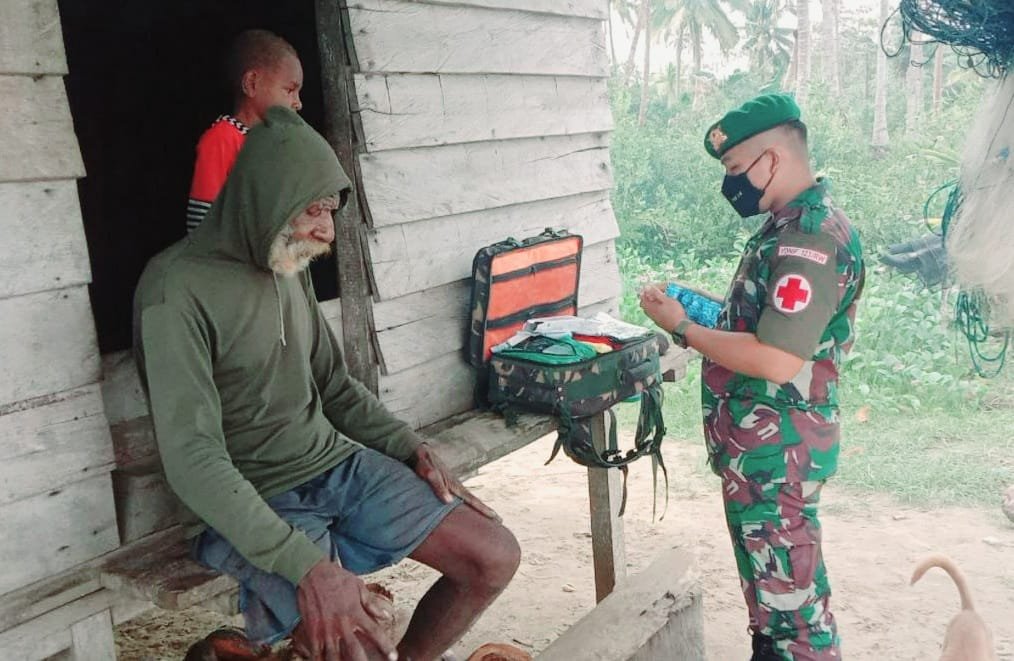 Dalam upaya meningkatkan kualitas kesehatan masyarakat perbatasan, Satgas Pamtas RI-PNG Yonif 123/Rajawali Kolakops Korem 174/ATW dari Pos Kuller mengunjungi masyarakat di Kampung Ndalir, Distrik Naukenjerai, Kabupaten Merauke, Papua.