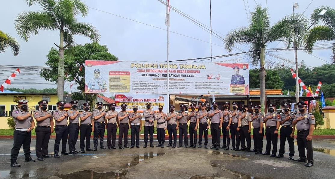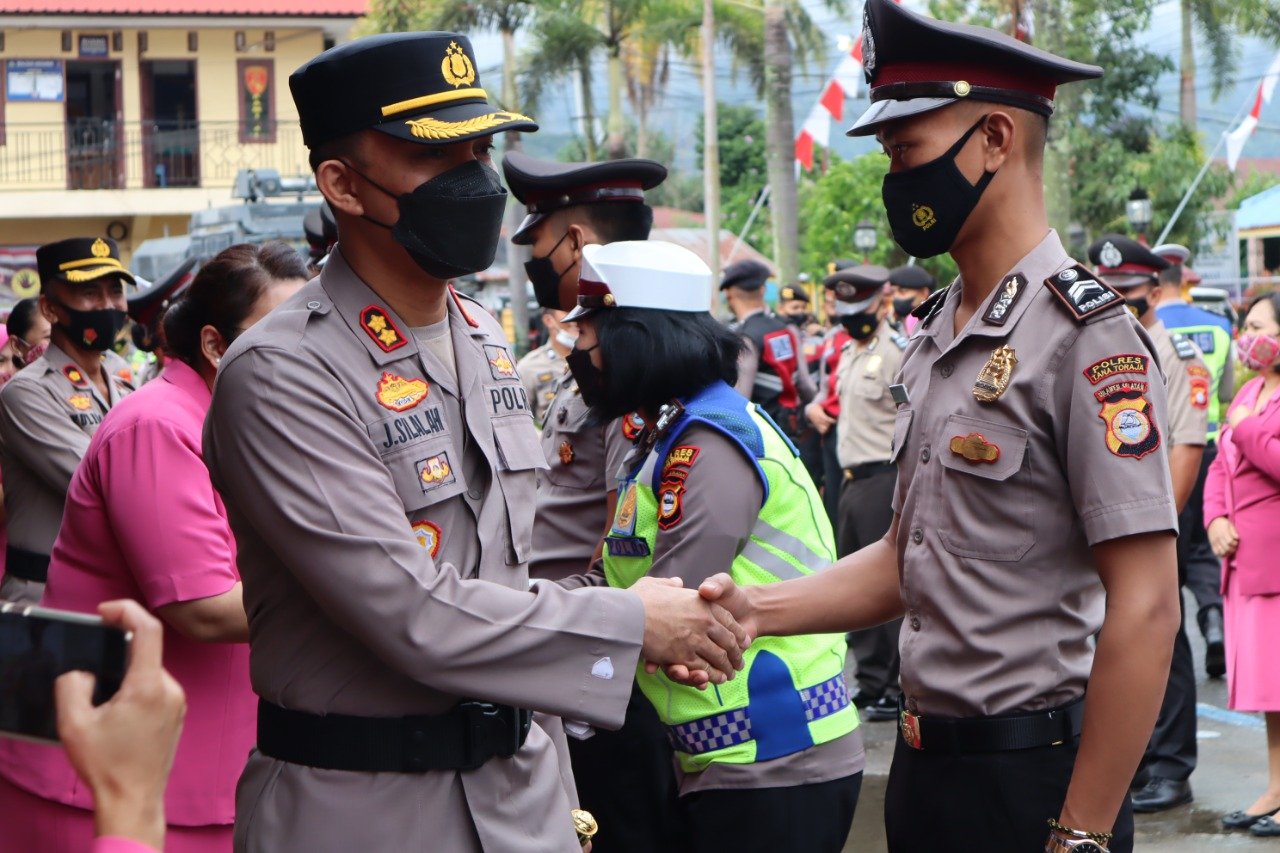 Kapolres Tana Toraja, AKBP Juara Silalahi mengukuhkan kenaikan pangkat pada upacara di halaman Mapolres Tana Toraja.