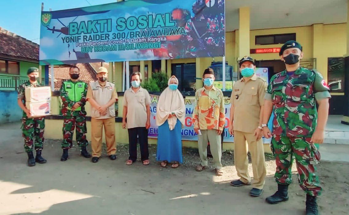 Seperti yang dilaksanakan Yonif Raider 300/Bjw di wilayah Kabupaten Sukabumi maupun Kabupaten Cirebon yaitu melaksanakan pengobatan masal dan pembagian sembako kepada masyarakat yang membutuhkan. Dengan dibagikannya 250 paket sembako kepada masyarakat diharapkan dapat membantu perekonomian masyarakat yang membutuhkan.