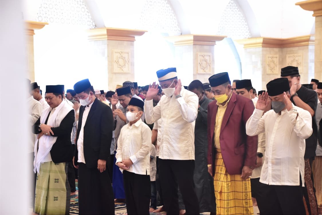 Bupati Sinjai Andi Seto Asapa (ASA) melaksanakan salat Idul Adha di Masjid Islamic Center Lingkungan Tanassang, Kelurahan Alehanuae, Kecamatan Sinjai Utara, Ahad (10/07/2022).