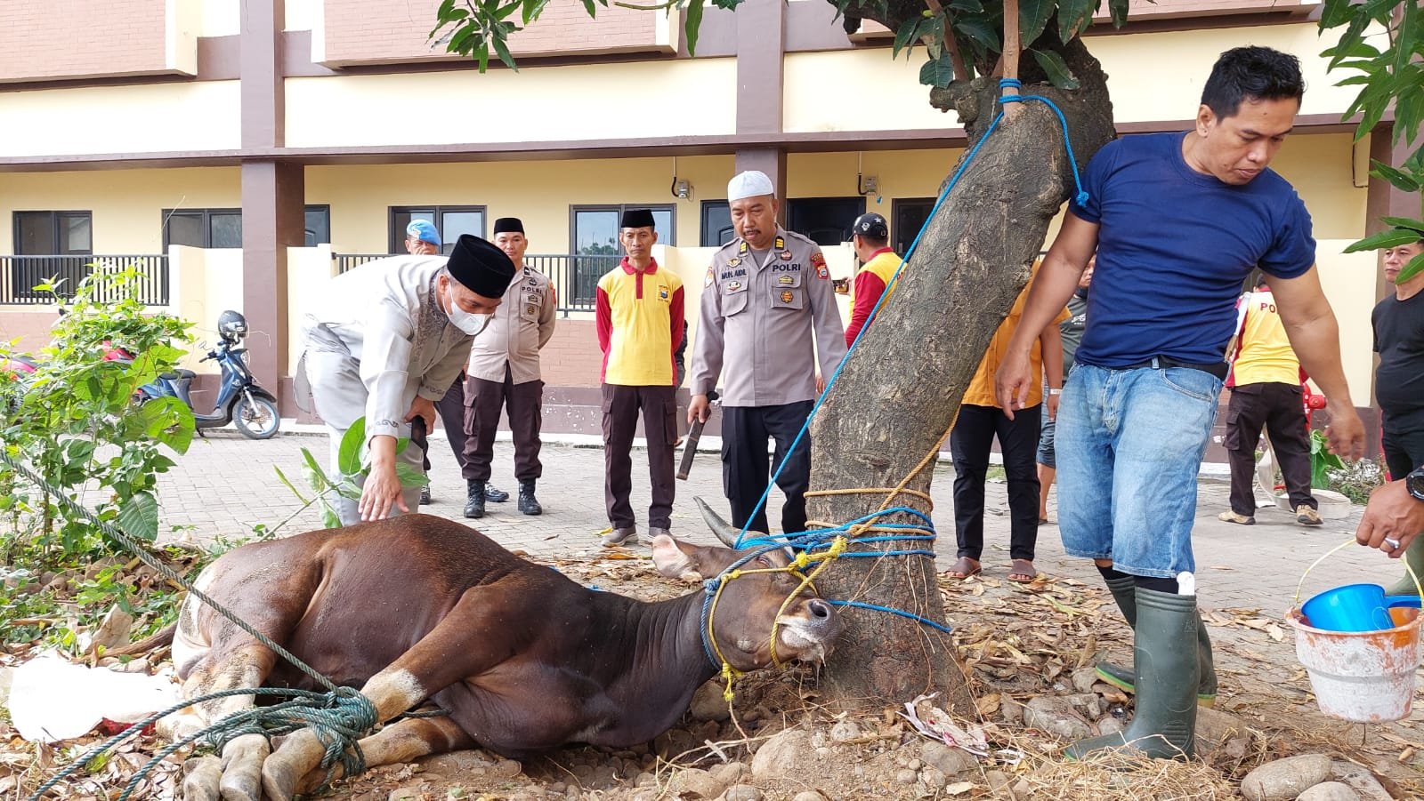 Guna memaknai perayaan Idul Adha 1443 Hijriah, jajaran Polres Gowa kembali mengadakan penyembelihan dan pembagian daging hewan kurban.