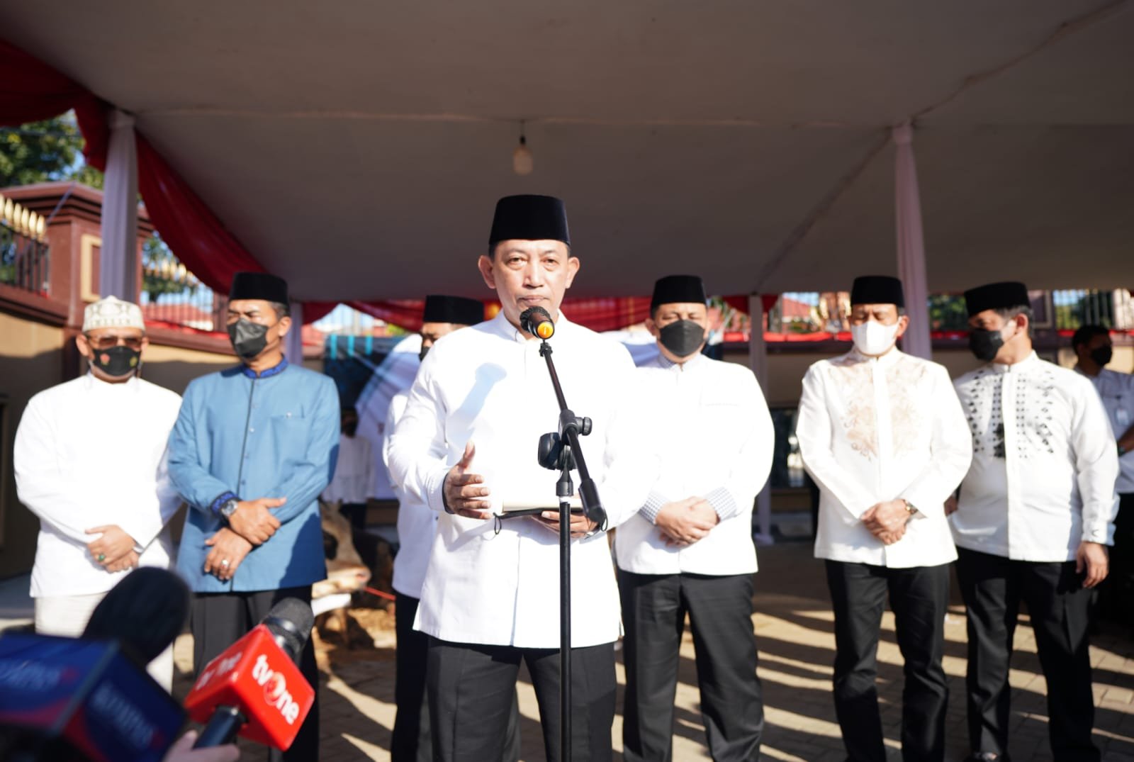 Kapolri Jenderal Listyo Sigit Prabowo secara simbolik menyerahkan 112 hewan kurban sapi dalam rangka memperingati Hari Raya Idul Adha 1443 H di Lapangan Bhayangkara Mabes Polri, Jakarta Selatan, Minggu (10/07/2022).