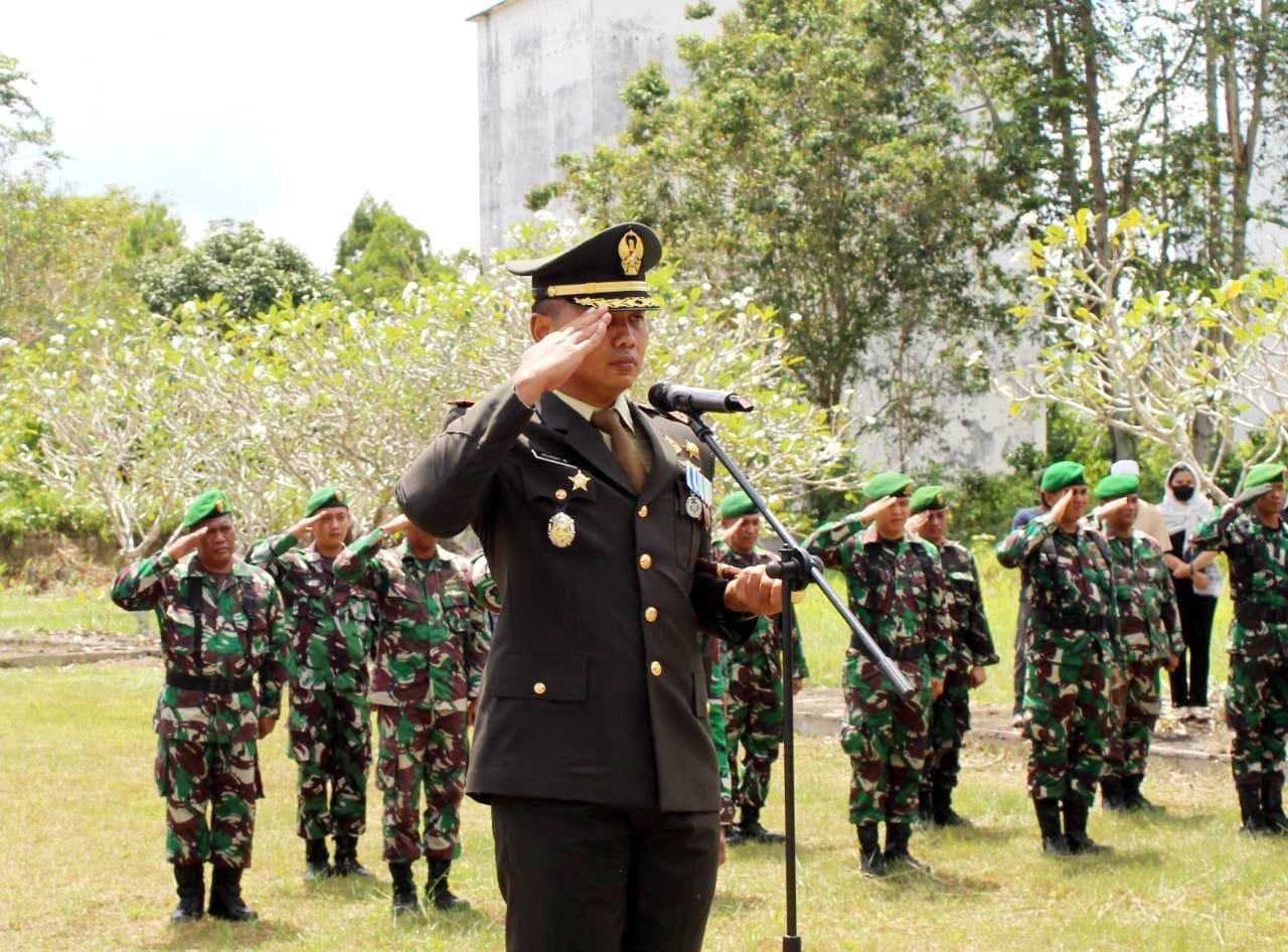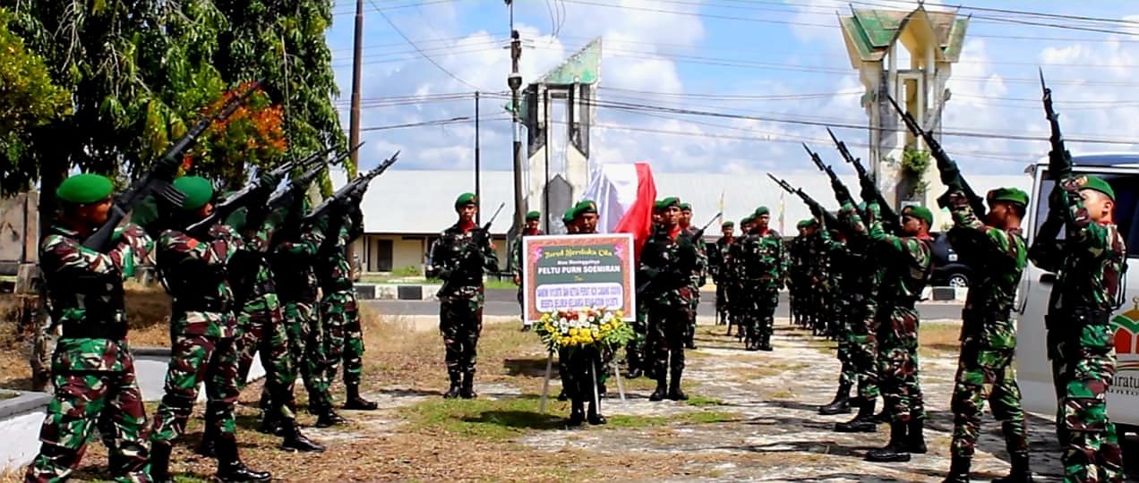 Dandim 1012/Buntok Letkol Inf Hendro Wicaksono, SIP memimpin upacara pemakaman Almarhum Peltu (Purn) Soemiran secara militer, bertempat di Taman Makam Pahlawan Abdi Kencana Jl. Soekarno Hatta Desa Sababilah, Kabupaten Barito Selatan, Selasa (12/07/2022).