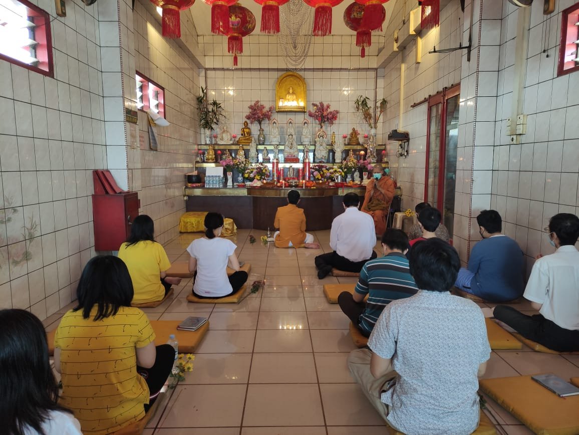 Puja Bakti Asadha secara sederhana dan terbatas ini dihadiri YM. Bhikkhu Upasanto dari Sangha Theravada Indonesia, dan diikuti tiga puluh umat Buddha beragam usia secara khusuk.