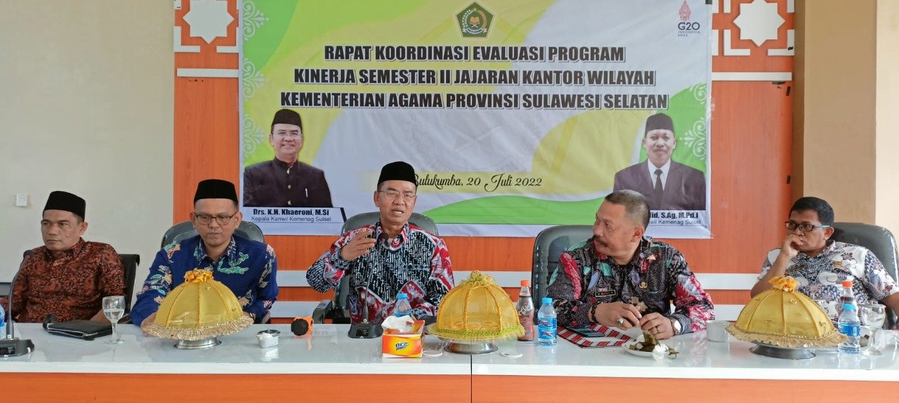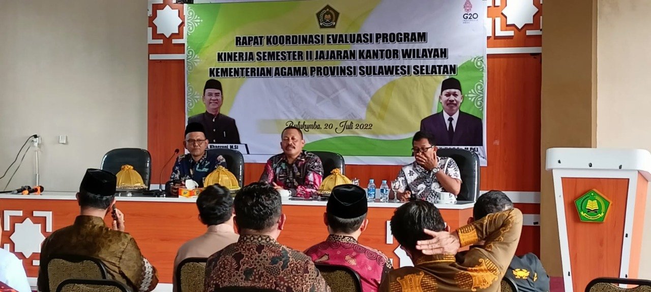 Para Kakankemenag Kabupaten Kota yang hadir mengikuti Rapat Koordinasi, Evaluasi Program dan Kinerja Semester II Jajaran Kantor Wilayah Kementerian Agama Provinsi Sulsel yang ditempatkan di Aula Gedung Pusat Layanan Haji dan Umrah Terpadu (PLHUT) Kemenag Kabupaten Bulukumba kompak berkomitmen untuk mensukseskan Event Pekan Merdeka Toleransi Sulsel tahun 2022 yang digagas oleh Kakanwil.