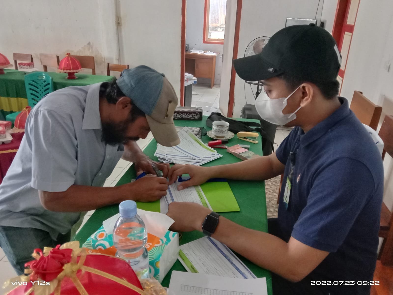 Petugas dari Bank Sulselbar sebagai mitra kerja Dinas Perkim, Muh Yusuf Rifaldi Achmad segera menyiapkan uang tunai sebesar Rp 1.250.000 perunit rumah dan diserahkan langsung Wabup Saiful Arif didampingi Kadis Perkim, para Kepala Desa, Camat Pasi Marannu Syamsil, yang memandu acara, disaksikan para petugas lapangan, baik tim tehnis, maupun fasilitator.