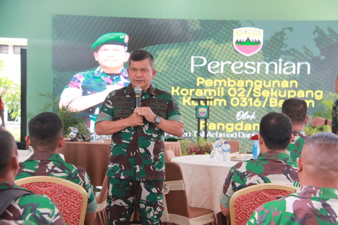 Pangdam I/Bukit Barisan Mayjen TNI Achmad Daniel Chardin, SE, M.Si meresmikan bangunan Kantor Koramil 02/Sekupang Kecamatan Sekupang, Kota Batam, Provinsi Kepri, Jumat (05/08/2022).