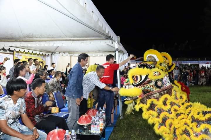 Sekda Pinrang Andi Budaya membuka Pekan Raya Pinrang 2022 yang ditandai dengan pemukulan gong di Lapangan Bosowa, Jumat (12/08/2022) malam.