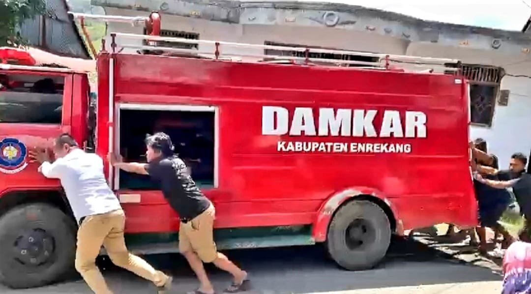 Satu unit Damkar yang dikerahkan dari Anggeraja untuk melakukan pemadaman, justru mengecewakan karena sudah terlambat tiba di TKP dan malahan mogok lagi. Rumah sudah rata dengan tanah, sementara Damkar tidak dapat berbuat apa-apa.