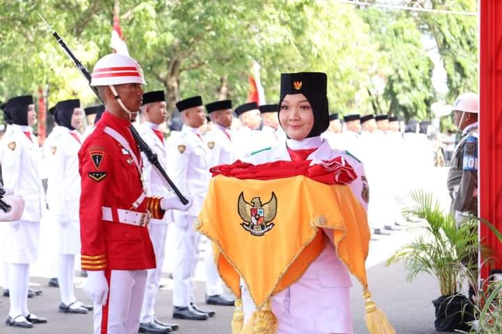 Pada pelaksanaan penaikan bendera merah putih, Bupati Pinrang Irwan Hamid menyerahkan duplikat Bendera Pusaka kepada pembawa baki yang bernama Fatma Ashara yang saat ini menempuh pendidikan di SMA Negeri 6 Pinrang.