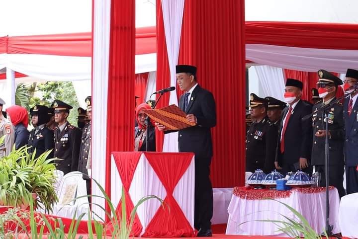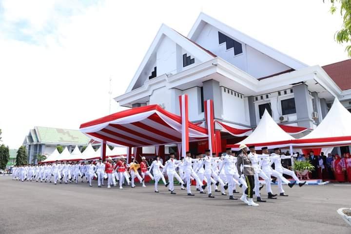 Upacara peringatan Hari Ulang Tahun (HUT) Kemerdekaan RI ke-77 tingkat Kabupaten Pinrang berlangsung khidmat, Rabu (17/08/2022) pagi di halaman Kantor Bupati Pinrang.