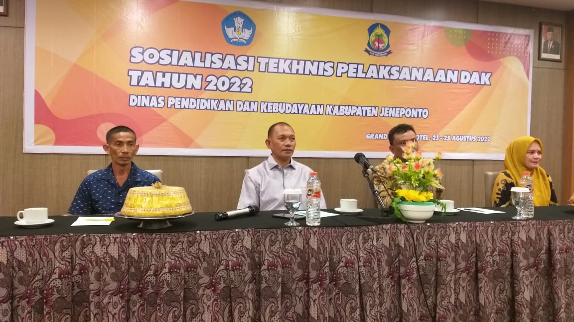 Sebesar Rp 4,4 miliar Dana Alokasi Khusus (DAK) Tahun 2022 Kabupaten Jeneponto diperuntukkan kepada 15 Sekolah Dasar (SD). Demikian disampaikan ketua panitia pada pembukaan sosialisasi penggunaan Dana Alokasi Khusus, Nurlaelah Syar, SE bertempat di Grand Palece Hotel Jl.Tentara Pelajar No.50 Makassar, Selasa, 23 Agustus 2022.