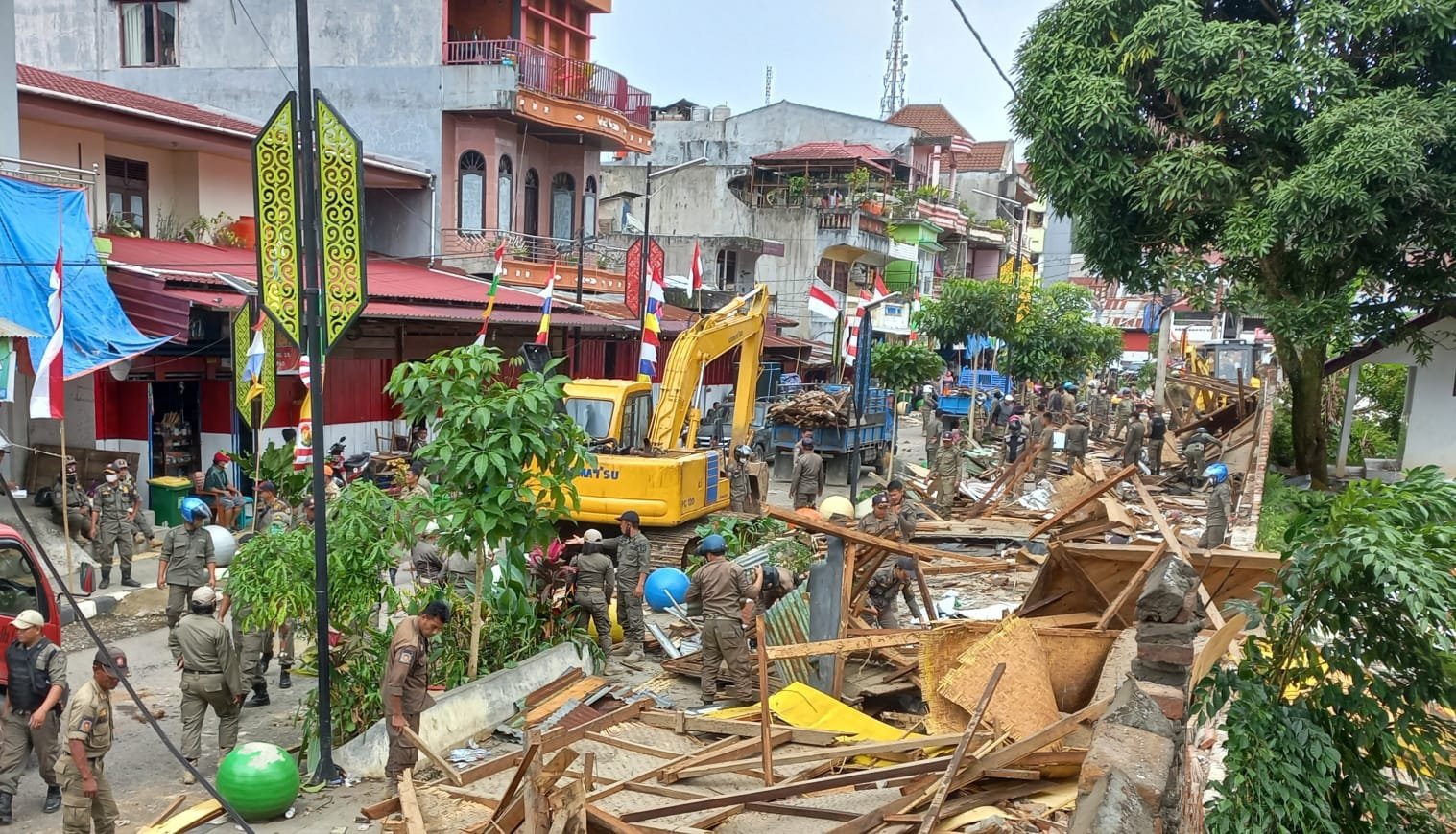 Pembongkaran lapak dilakukan ratusan anggota Satpol PP Pemkab Toraja Utara yang dibackup Polres Toraja Utara, Kodim 1414 Tana Toraja, dan Brimob Polda Sulawesi Selatan sebanyak 30 anggota dari Baibunta Palopo.