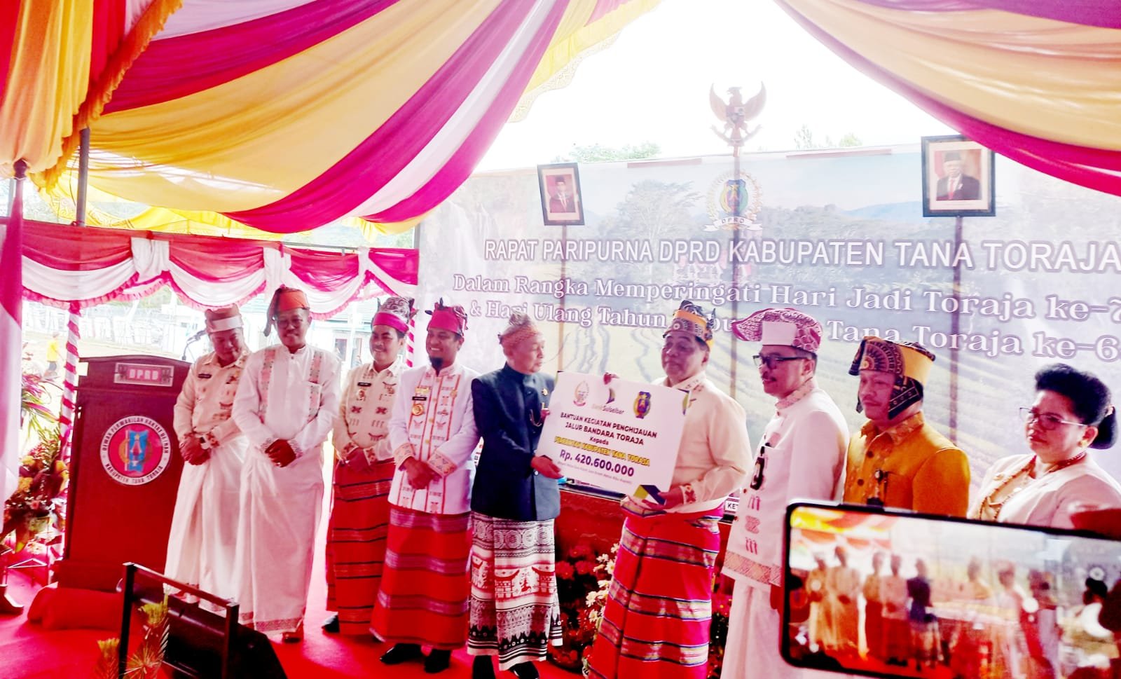 Perayaan puncak peringatan Hari Jadi Toraja dan HUT Kabupaten Tana Toraja dilaksanakan di Rantetayo, Rabu (31/08/2021) dan dihadiri Gubernur Sulawesi Selatan Andi Sudirman Sulaiman, Anggota DPRD Provinsi Sulawesi Selatan, Anggota DPRD Tana Toraja, Pejabat Tinggi Provinsi Sulsel, Ketua Umum PMTI, Bupati Tana Toraja dan Toraja Utara, Bupati Enrekang, Wakil Bupati Mamasa, Walikota Palopo, Forkopimda dan Direktur Bank Mandiri beserta undangan.