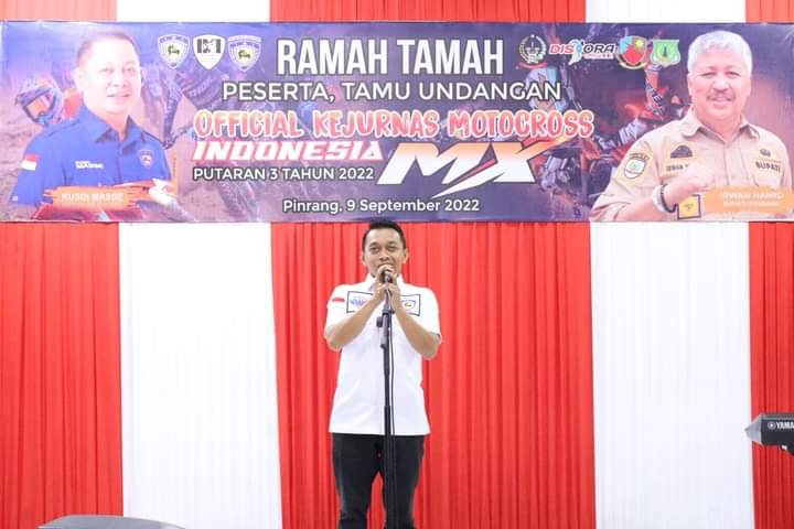 Bupati Pinrang menyampaikan selamat datang kepada Tim Official dan peserta Kejurnas Motocross Indonesia MX 2022 di Bumi Lasinrang.