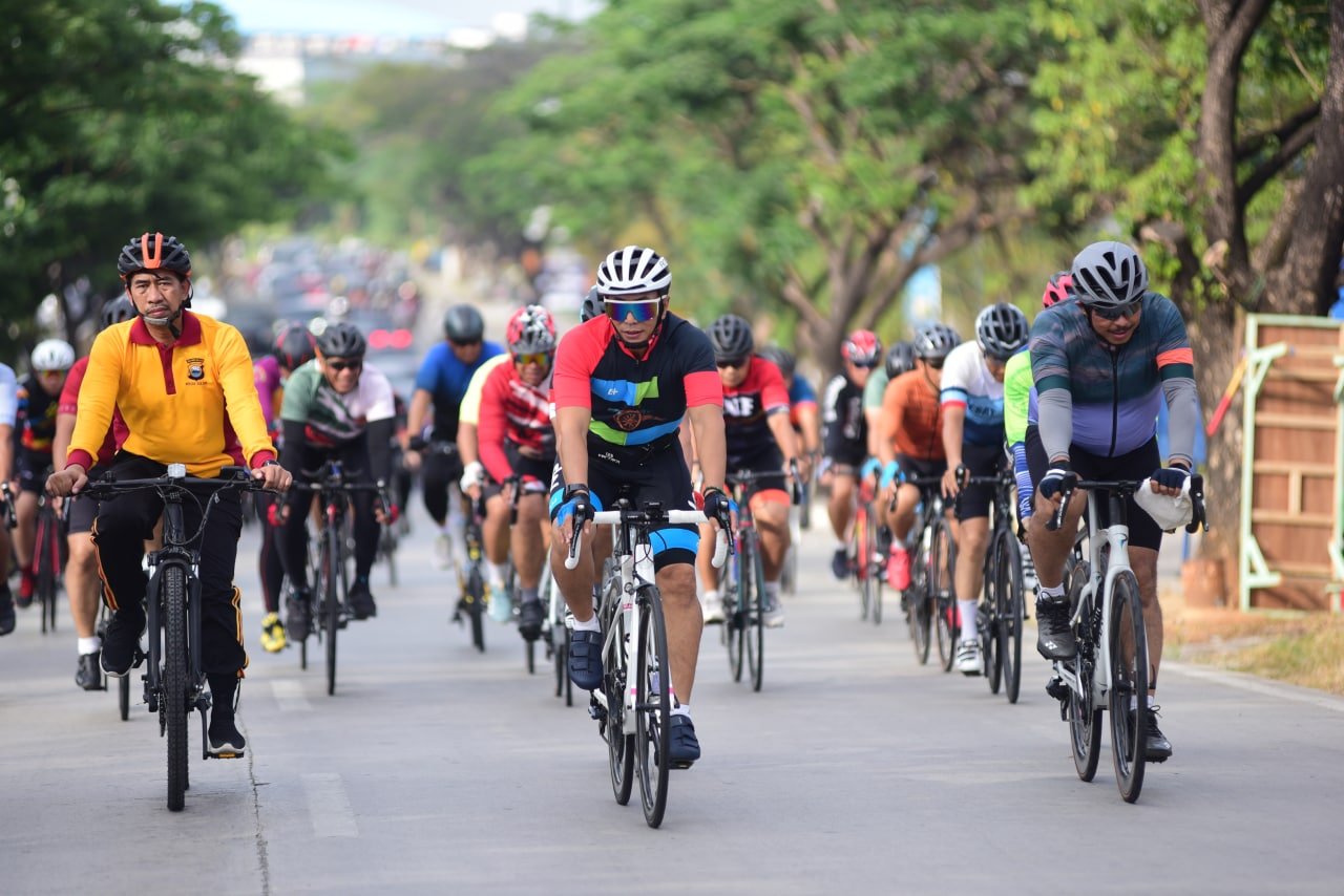 Pangdam XIV/Hasanuddin Mayjen TNI Totok Imam Santoso, SIP, S.Sos, M.Tr(Han) bersama Kapolda Sulsel Irjen Pol Drs. Nana Sujana, MM dan Pejabat Utama (PJU) Kodam XIV/Hasanuddin serta Polda Sulsel melaksanakan sepeda santai mengelilingi Kota Makassar, Selasa (13/09/2022).