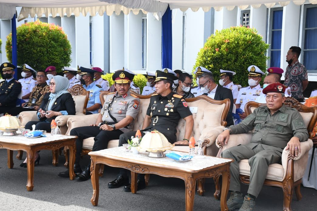 Pangdam XIV/Hasanuddin Mayjen TNI Dr. Totok Imam Santoso, SIP, S.Sos, M.Tr.(Han) didampingi Ketua Persit KCK PD XIV Hasanuddin Ny. Desi Totok Imam menghadiri acara serah terima jabatan (Sertijab) Danlantamal VI Makassar, dari Laksma TNI Dr. Benny Sukandari, SE, MM, CHRMP kepada Kolonel Mar Amir Kasman, SE, MM, bertempat di Lantamal VI Makassar, Senin (19/09/2022).