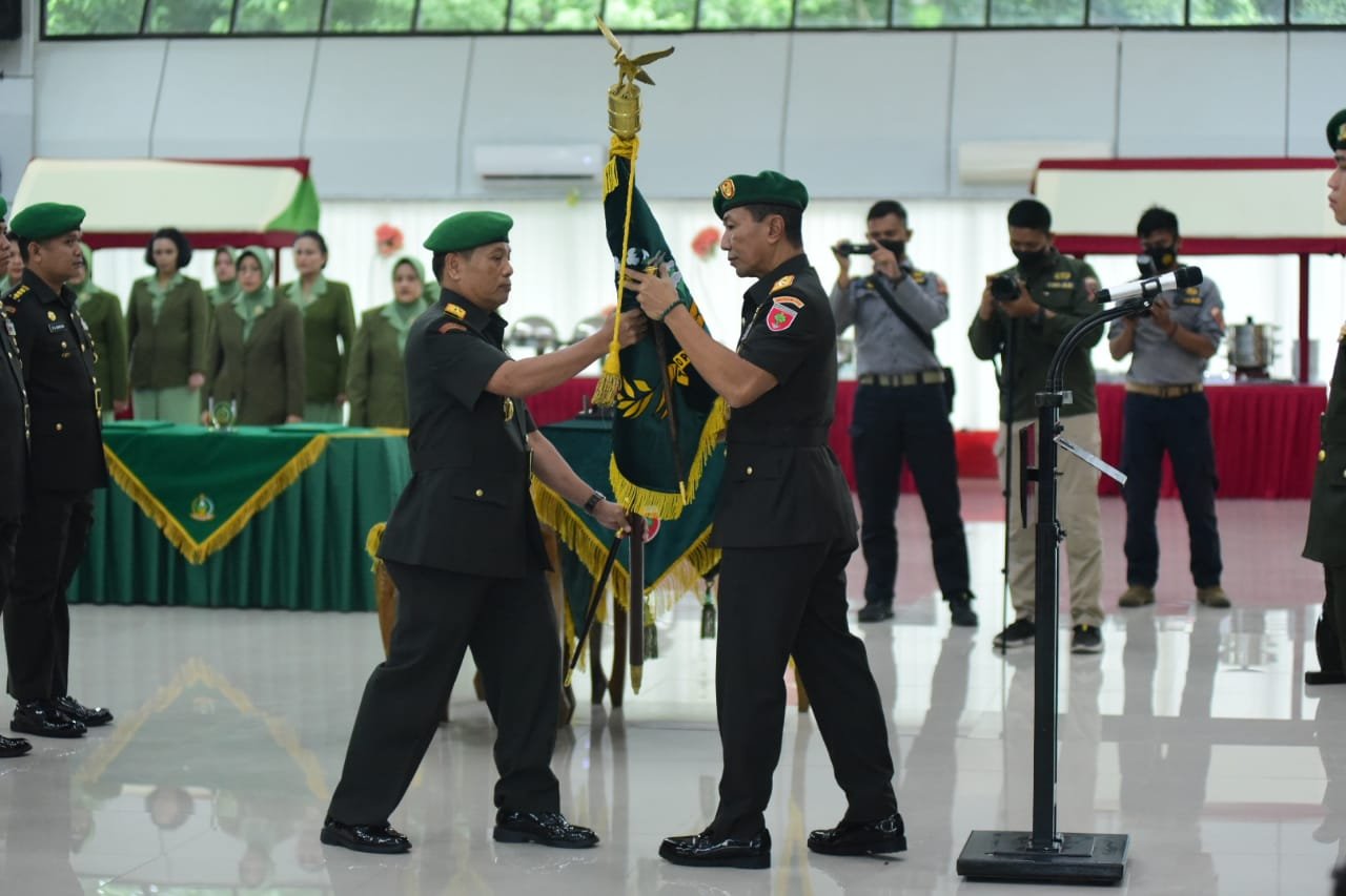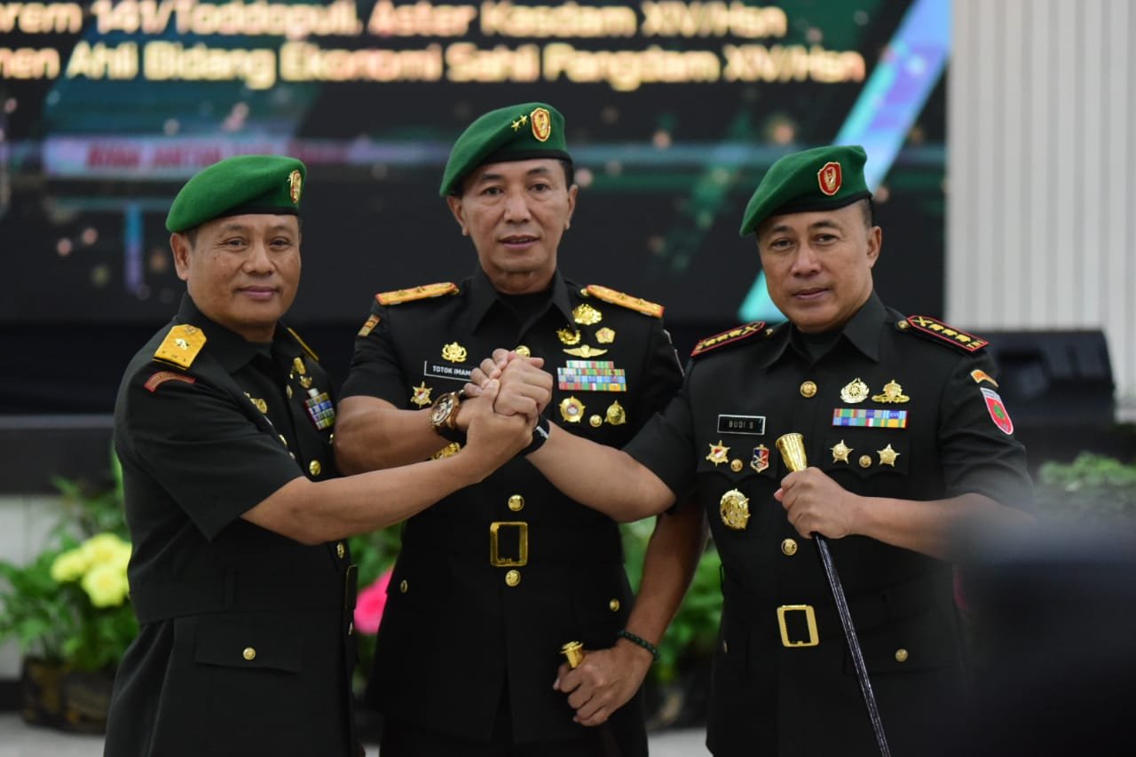 Pangdam XIV/Hasanuddin Mayjen TNI Dr. Totok Imam Santoso, SIP, S.Sos, M.Tr.(Han) mempimpin Serah Terima Jabatan (Sertijab) Pejabat Utama (PJU) Kodam, bertempat di Balai Pertemuan Hasanuddin (BPH) Makodam Jl. Urip Sumoharjo Makassar, Selasa (20/09/2022).