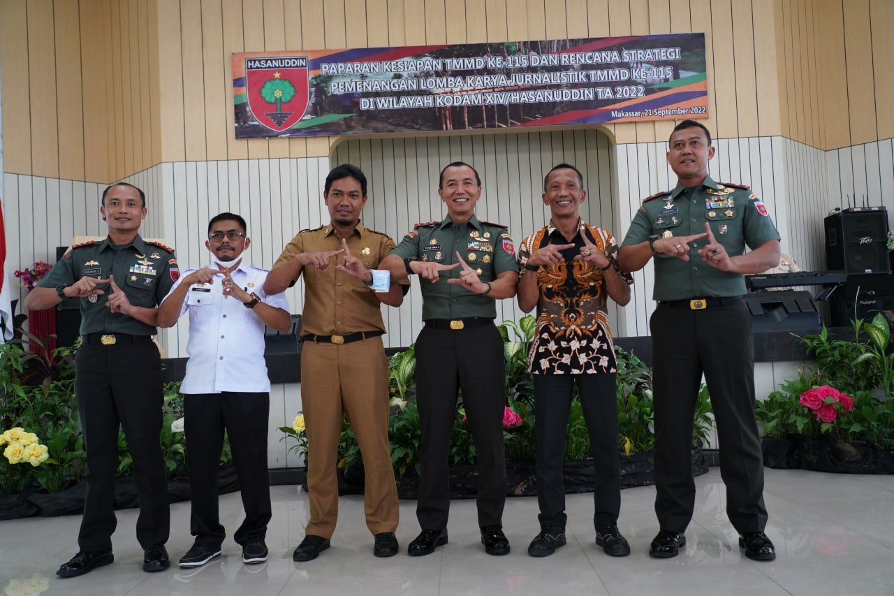 Dalam rangka memantapkan kesiapan pelaksanaan Tentara Manunggal Membangun Desa (TMMD) ke-115 dan Lomba Karya Jurnalistik (LKJ) Tahun 2022, Kodam XIV/Hasanuddin menggelar Paparan oleh Dansatgas TMMD dan Kapendam yang diterima langsung oleh Pangdam XIV/Hasanuddin Mayjen TNI Dr. Totok Imam Santoso, SIP, S.Sos, M.Tr(Han), bertempat di Balai Pertemuan Hasanuddin (BPH) Makodam, Jl. Urip Sumoharjo, Makassar, Rabu (21/09/2022).