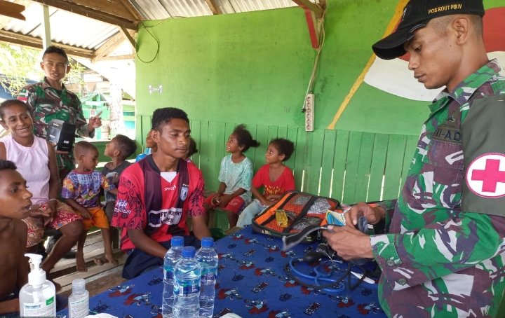 “Salah satu tujuan kami yaitu melihat warga senyum ceria, beraktivitas dan sehat dengan adanya pelayanan kesehatan ini," jelas Danpos Skamto Satgas Pamtas RI-PNG Yonif 711/Rks Letda Inf Samsons Desius.