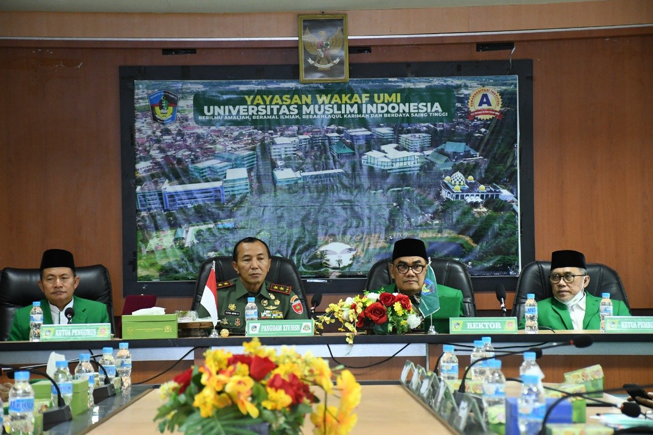 Pangdam XIV/Hasanuddin Mayjen TNI Dr. Totok Imam Santoso, SIP, S.Sos, M.Tr(Han) bertandang di Kampus Universitas Muslim Indonesia (UMI), tepatnya di Jl. Urip Sumoharjo Makassar, Jumat (23/09/2022).
