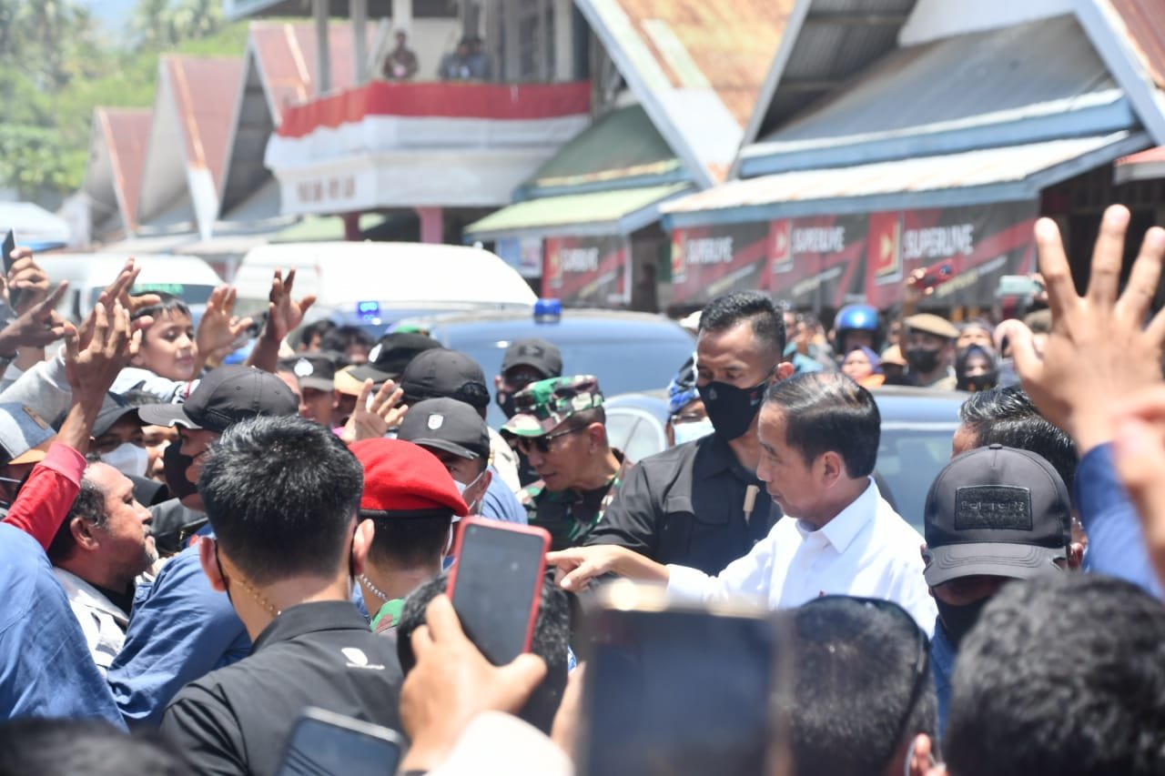 Kunjungan Presiden Jokowi ini disambut dengan antusiasme masyarakat yang tinggi. Bapak Presiden menyapa langsung masyarakat, baik di sepanjang jalan, maupun di dalam pasar-pasar tradisional.