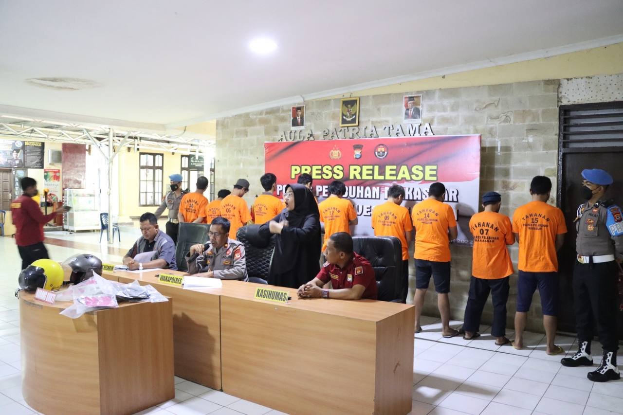 Polres Pelabuhan Makassar mengungkap hasil Operasi Sikat 2022 melalui kegiatan Press Release di Mapolres tersebut yang dipimpin Wakapolres didampingi Kasat Reskrim dan Kasihumas.