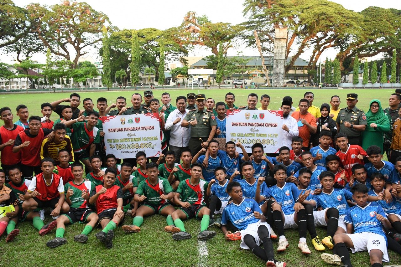 Pangdam XIV/Hasanuddin Mayjen TNI Dr. Totok Imam Santoso, SIP, S.Sos, M.Tr(Han), melepas pemenang tingkat Provinsi Liga Santri Piala Kasad Tahun 2022 Kodam XIV/Hasanuddin, bertempat di Lapangan Hasanuddin Jl. Jenderal Sudirman, Makassar, Jumat (30/09/2022).
