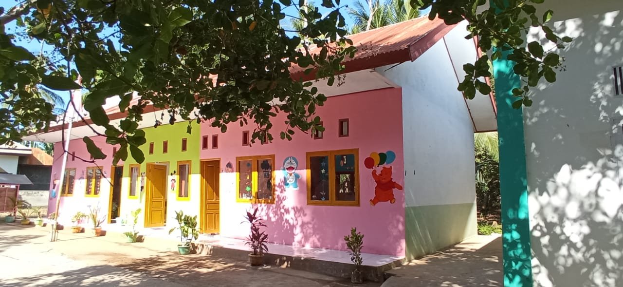 Aura dan harapan kehidupan sekolah, perlahan mulai nampak dari goresan kanvas yang digunakan untuk melukis beberapa bagian dinding sekolah dengan menampilkan gambar pemeran film kartun sebagai daya tarik dalam merangsang imajinasi, kreatifitas, dan minat belajar anak, layaknya sebuah lingkungan pendidikan anak usia dini (PAUD).