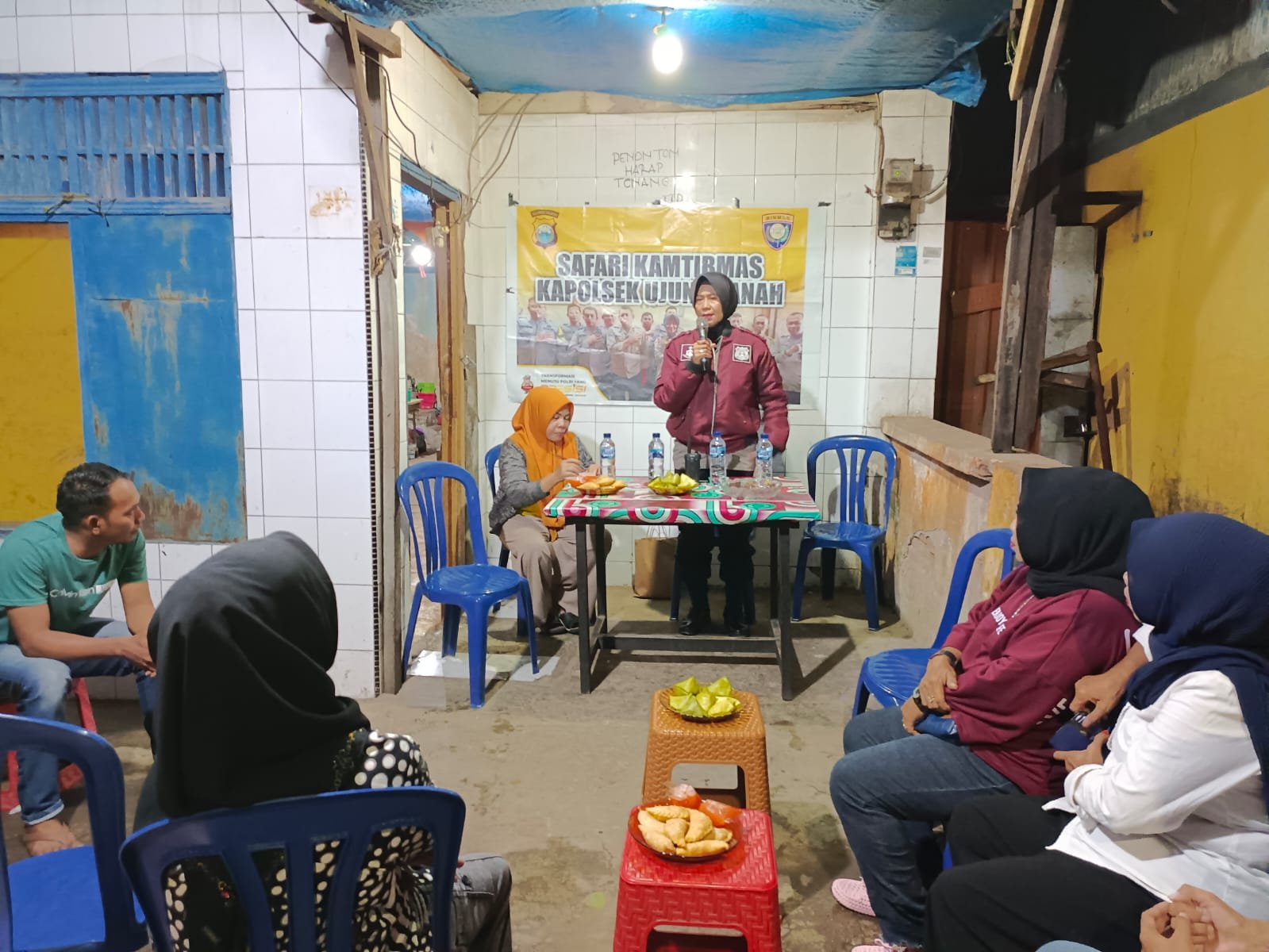 Kapolsek Ujung Tanah, Kompol Andriyani Lilikay didampingi Kanit Binmas Iptu Rukanto dan Bhabinkamtibmas melaksanakan Safari Kamtibmas di Kelurahan Patingalloang, Kecamatan Ujung Tanah, Kota Makassar.