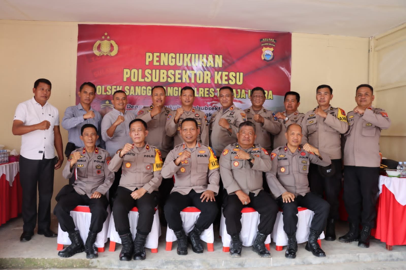 Upaya mendekatkan dan meningkatkan pelayanan kepada masyarakat, Kapolres Toraja Utara AKBP Eko Suroso didampingi Waka Polres Kompol Marthen Buttu dan sejumlah Pejabat Utama serta para Perwira dan Bintara Polres Toraja Utara menggelar pengukuhan Polsubsektor Kesu di Jln. Poros Kesu, Kelurahan Ba'tan, Kecamatan Kesu, Kabupaten Toraja Utara, Kamis (06/10/2022).