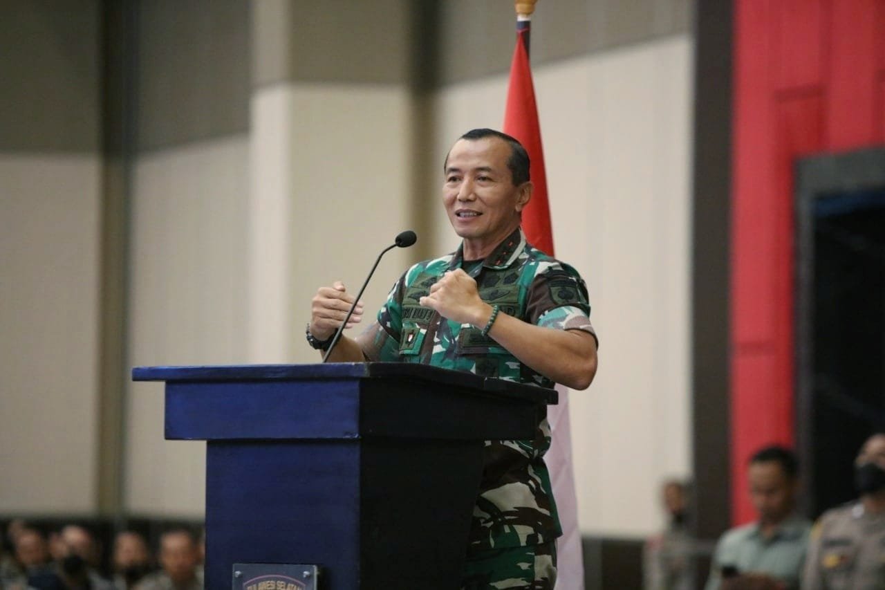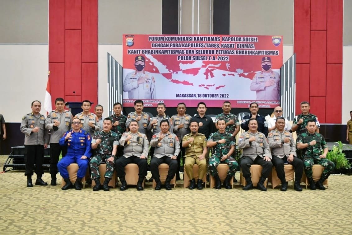 Pangdam XIV/Hasanuddin Mayjen TNI Dr. Totok Imam Santoso, SIP, S.Sos, M.Tr (Han), menghadiri serta memberikan arahan dalam kegiatan forum komunikasi Kamtibmas Kapolda Sulsel dengan para Kapolres, Kasat Binmas, Kanit Babinkamtibmas dan Babinkamtibmas, bertempat di Hotel Dalton Kota Makassar, Selasa (18/10/2022).