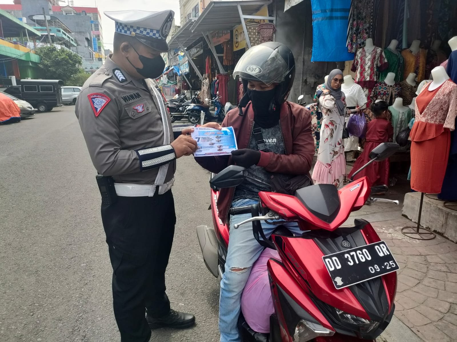 Demi keselamatan bersama masyarakat, Satlantas Polres Pelabuhan Makassar memberikan imbauan dan membagikan brosur yang berisi imbauan tentang pentingnya keselamatan berlalu lintas kepada masyarakat pengguna jalan baik kepada pengemudi ataupun pengendara kendaraan bermotor.