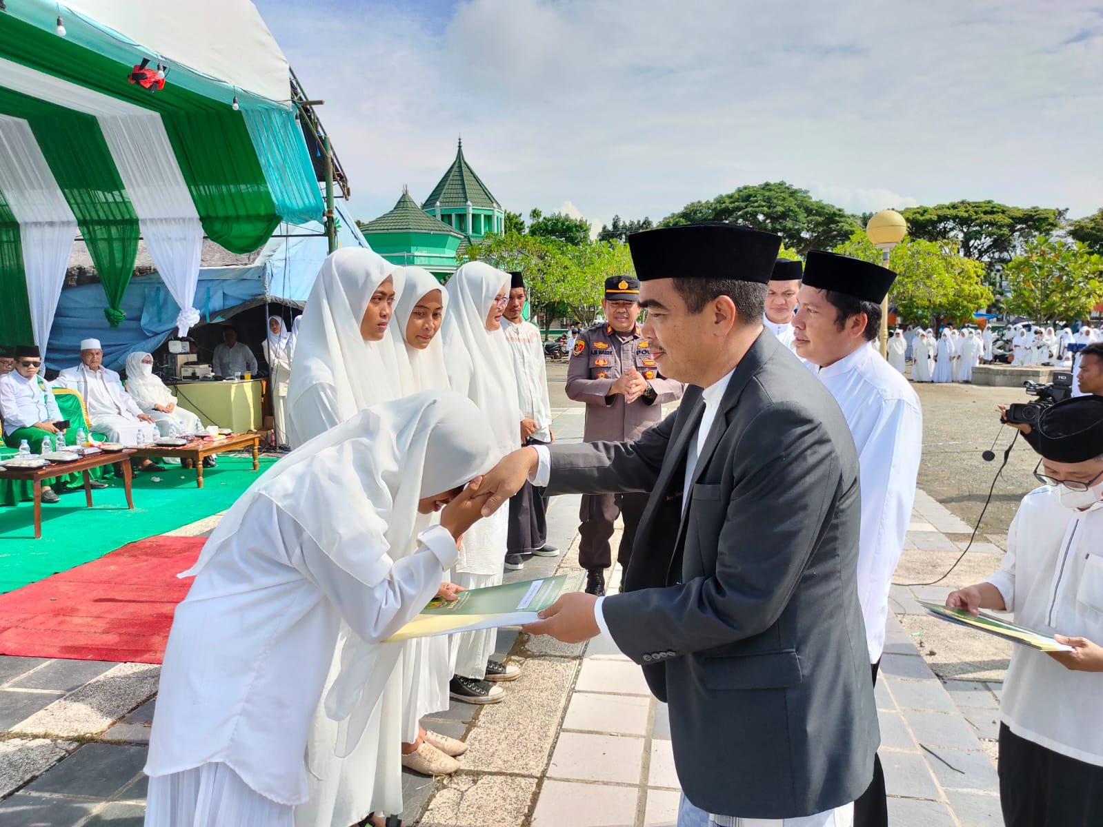 Upacara diikuti ASN dan non ASN lingkup Kemenag Sidrap, serta para santri pondok pesantren dan Lembaga Pendidikan Al-Qur'an se-Kabupaten Sidrap.
