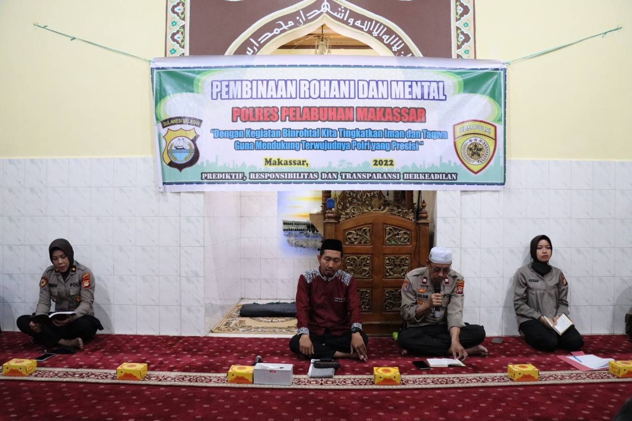 Polres Pelabuhan Makassar melaksanakan kegiatan pembinaan rohani dan mental (Binrohtal) secara rutin setiap hari Kamis setelah apel pagi bagi yang beragama Islam dan juga yang beragama Nasrani.