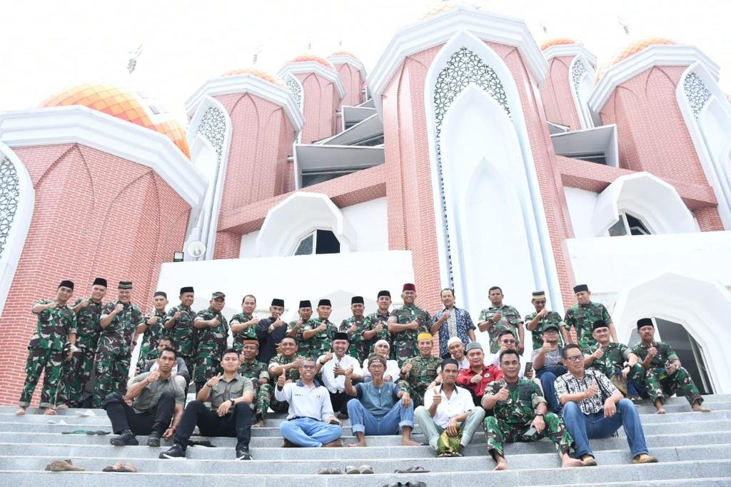 Setelah melaksanakan ibadah Sholat Jumat, Pangdam Hasanuddin beserta rombongan melaksanakan foto bersama dengan para jemaah dan imam Masjid. (*Rz)