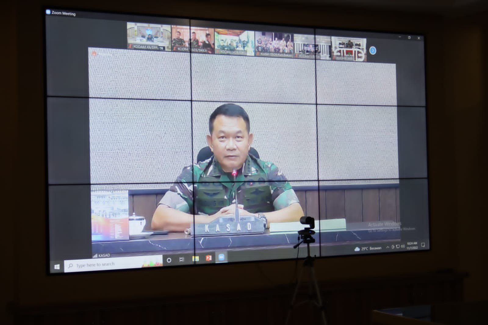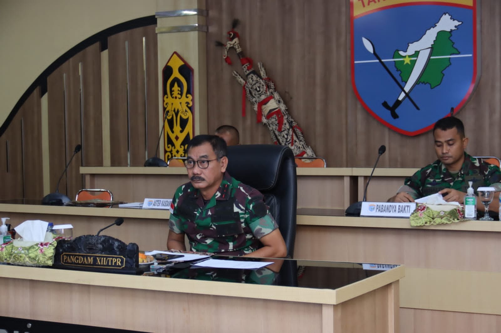 Panglima Kodam XII/Tanjungpura Mayjen TNI Sulaiman Agusto, SIP, MM mengikuti kegiatan video conference (Vicon) bersama dengan Kasad Jenderal TNI Dr. Dudung Abdurachman. Acara berlangsung di Ruang Rapat Puskodalopsdam XII/Tpr.