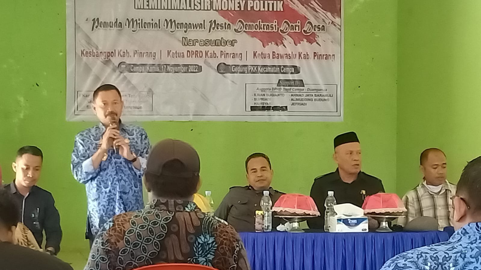 Bertempat di gedung PKK Kecamatan Cempa, Kamis (17/11/2022), Karang Taruna Desa Tanra Tuo, Kecamatan Cempa menggelar dialog politik menyambut Pileg dan Pilkada 2024 dengan tema meminimalisir terjadinya money politik perlu diapresiasi dan dukungan karena telah berani tampil sebagai generasi sadar demokrasi.