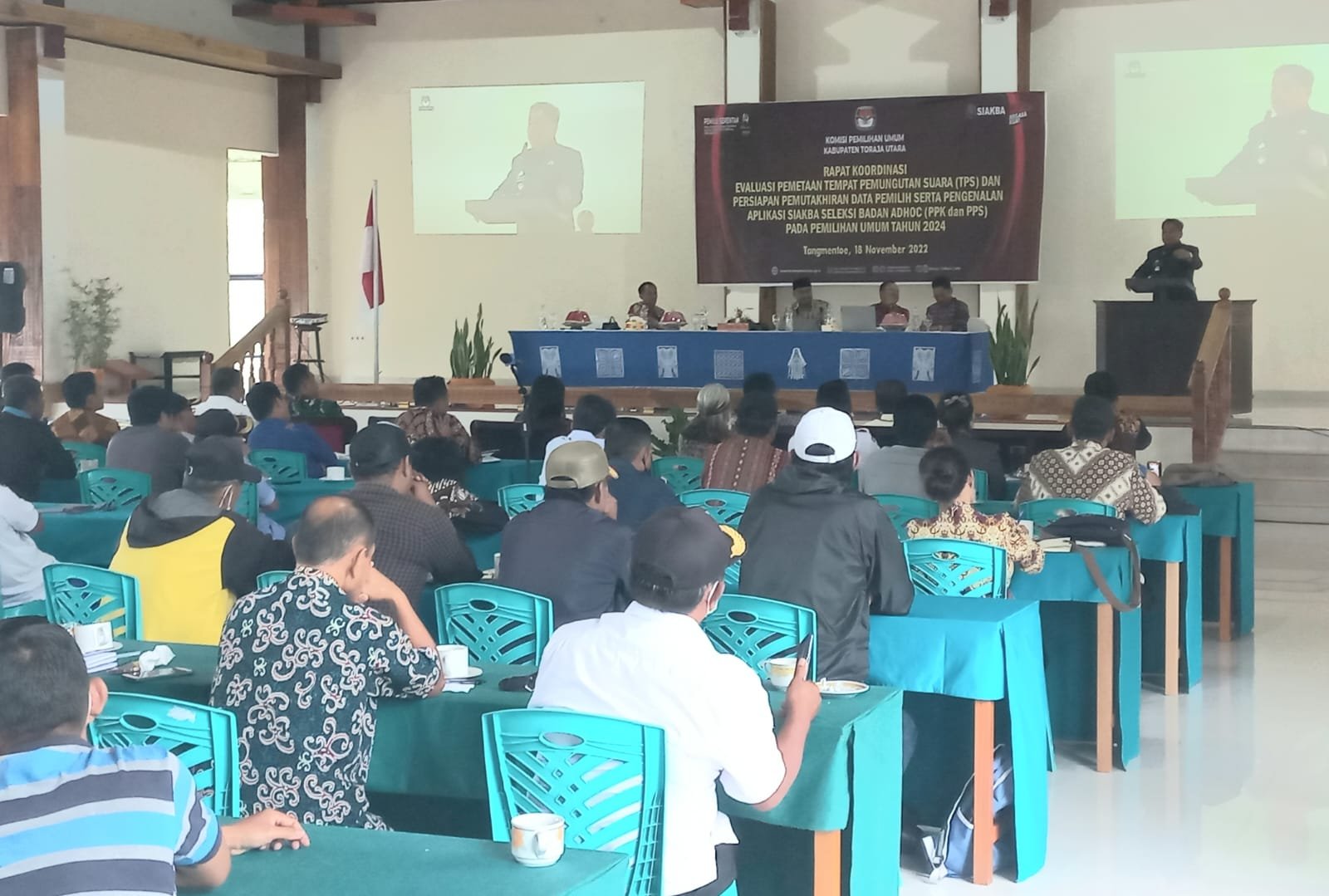 Sementara sebelumnya di tempat yang berbeda, KPU Toraja Utara dihari yang sama juga mengadakan Rapat Koordinasi Evaluasi Pemetaan Tempat Pemungutan Suara (TPS) dan Persiapan Pemutakhiran Data Pemilih serta Pengadaan Aplikasi Siakba Seleksi Badan Adhoc (PPK dan PPS) pada Pemilihan Umum 2024.